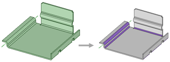 [変換] ツールをクリックしてデザインのサーフェスボディを選択すると、そのサーフェスボディが自動的に厚みを増して、シートメタルのディフォルトの厚さを持つシートメタルボディになります。この改良によって、デザインをシートメタルに変換する前にスケッチしたサーフェスを元に戻してやり直さずに済みます。ボディを変換したら、[識別] ツールで、フォーム、ジョグル、ヘムなどを呼び出すことができます。