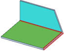 、ベンド、接合 (シートメタルとして作成したディフォルトサイズの接合のみで、インポートされた接合ではない) は、自動的に検出され、色により識別されます。ディフォルトの厚さで切り離すことができない面はハイライトされません。赤で表示されるエッジは、以下の図のように、正方形ではない終了面を示しています。