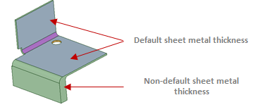 されたシートメタル面だけが青で表示されます。厚さがディフォルト値と異なるシートメタル (下図参照) は青で表示されません。