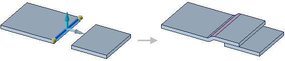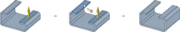 [ボディまで] ツールガイドは、オブジェクトを別のオブジェクトまでプルします。 [ボディまで] ツールガイドを使用して、面、フォーム、ビードをパーツ (エッジや面などの) 上の新しい位置に移動するときは、[移動] ツールハンドルで方向を選択し、[ボディまで] ツールをクリックして、面、フォーム、ビードを新しい位置に移動します。このツールガイドは、展開モードのシートメタルモデルでも使用できます。 |