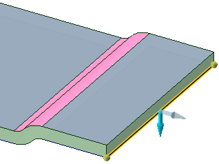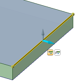 は薄いため、また縮小していることもあるため、厚さのないエッジの選択はエッジと面の両方の [プル] オプションで使用できます。下の図は、エッジ (プルの矢印が薄く表示されている) または面 (プルの矢印がアクティブ) のプルを選択できる状態を示しています。この場合、ウォール