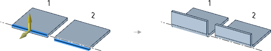 のエッジをプルすると、両側にギャップがあるウォールが作成されます。リップリリーフタイプが選択された場合、ギャップはリップ幅と等しくなります。