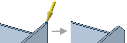 もう 1 つのエッジとは反対の方向にプルすると、選択されたエッジは内角になります。