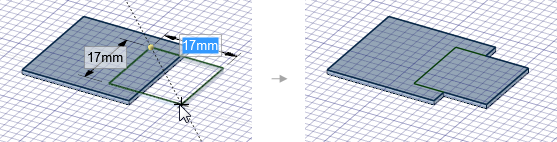スケッチの開始位置によって、ベンド時にシートの内側・外側どちらの面を維持するか判断されます。 |