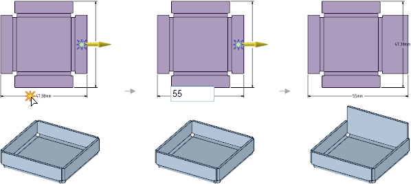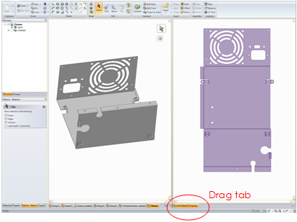 シートメタルデザインを展開し、展開コンポーネントとその元のデザインで、変更を同時に表示できます。