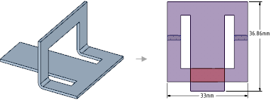 展開パーツの全体の外形寸法は、スケッチ面の向きに基づいて寸法測定