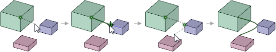 を通過する場合、システムはファセット点を通るようにカーブを調整します。線は緑色で、弧は青色で表示されます。システムが生成したカーブには以下のオプションが適用されます。
