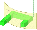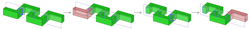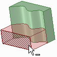 [領域選択] ツールガイドは、ボディが面でカットされると有効になります。このツールガイドが有効なとき、ターゲットの上にマウスを移動するとカットによって作成された領域を確認できます。削除可能な領域は赤でハイライトされます。 |