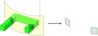 [切断部を選択]ツールガイドで、このオプションを選択して、これらの円筒サーフェスを含めて、ボディ全体を通るプレーンにより作成される特定の断面を選びます。[サーフェス分割の作成]のためには |