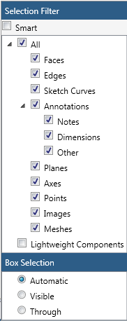 スマートを有効にして、選択フィルターを小さく収縮させます。この場合、ボックス選択 オプションのみが選択可能です。