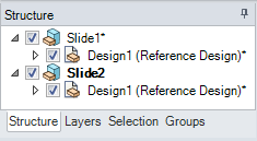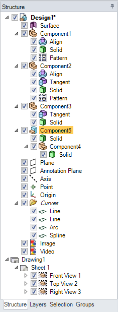 ストラクチャーツリーに表示されるトップレベルのオブジェクト (上の図では Design1) はコンポーネントです。