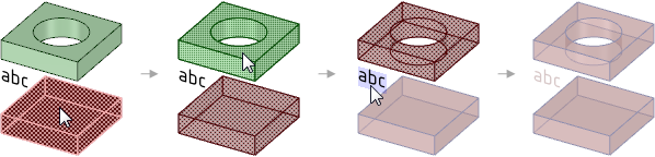 [スタイルペインタ] ツールのターゲットとして、[ストラクチャー] ツリーからコンポーネントを選択できます。コンポーネント内の全てのソリッドに色および透明度が適用されます。コンポーネントをソースのオブジェクトとして選択することはできず、ターゲットコンポーネント内のソリッドのみが変更されます。