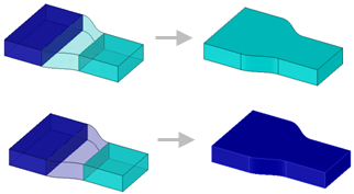 (i.e. a surface that can be flattened into a plane). The tool attempts to create planes, cylinders, and cones, in that order to maximize the planar areas. It is restricted to blending between two parallel planes.